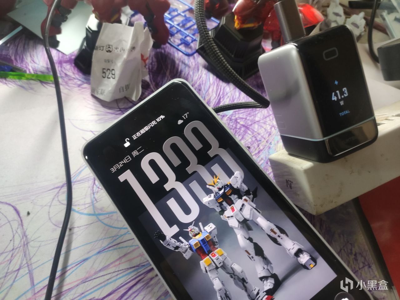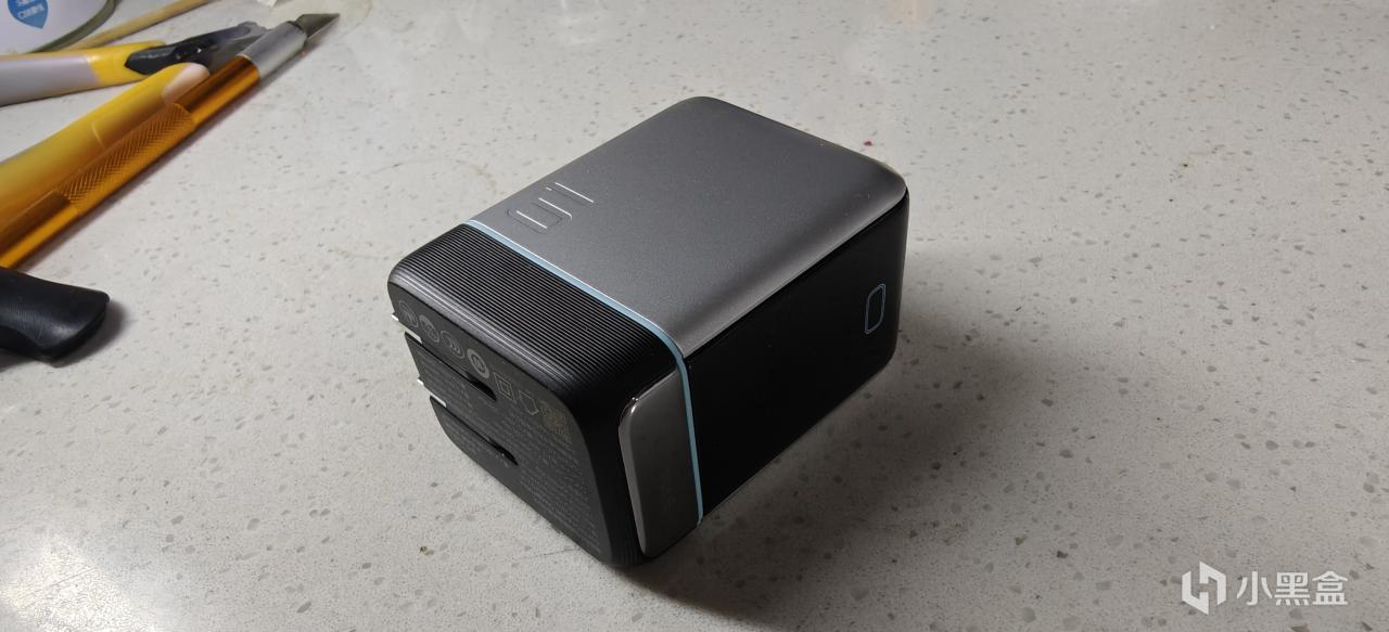 这块充电器的亮点是在侧面的屏幕,但是在屏幕对面的侧面的贴纸反而更加让人感兴趣。贴纸上面提到开始放心充模式之后,最高功率会限制在20W。因为主要是给手机充电,不过也不会影响笔记本和小电流设备使用。